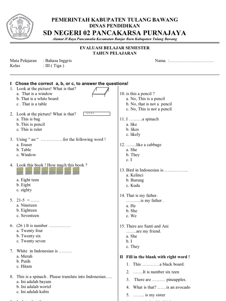 Ujian Akhir Semester (UAS) adalah momen penting bagi siswa untuk mengukur pemahaman mereka terhadap materi yang telah dipelajari selama satu semester. Bagi siswa kelas 3 SD, UAS Bahasa Inggris seringkali menjadi tantangan tersendiri. Oleh karena itu, persiapan yang matang sangat diperlukan. Artikel ini menyediakan 50 contoh soal latihan UAS Bahasa Inggris kelas 3 SD, lengkap dengan pembahasan, untuk membantu siswa mempersiapkan diri dengan lebih baik.
